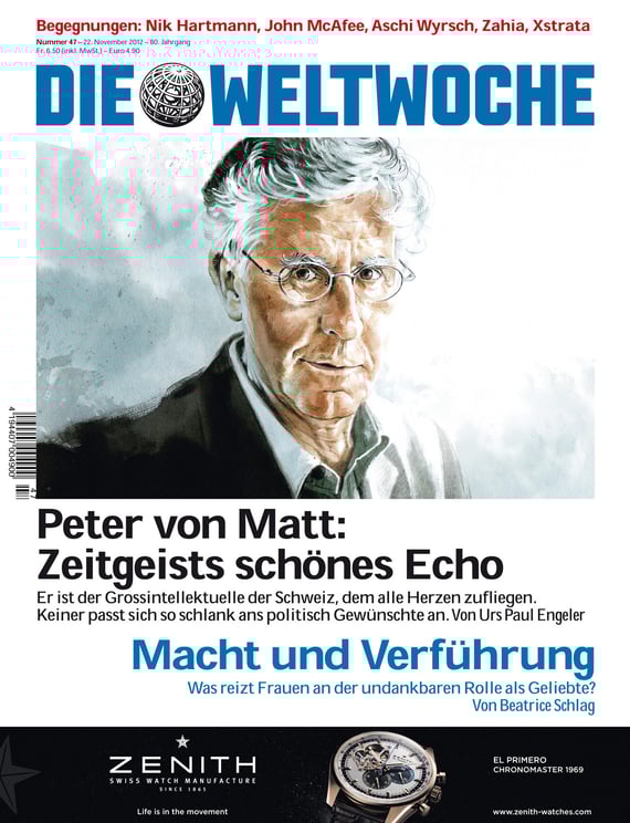 Die WELTWOCHE vom 22.11.2012 mit meinem Porträt von Peter von Matt auf dem Titelblatt.