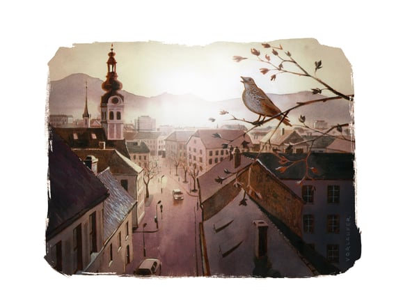 Illustration für die neue Reihe "Innehalten" im Servus-Magazin